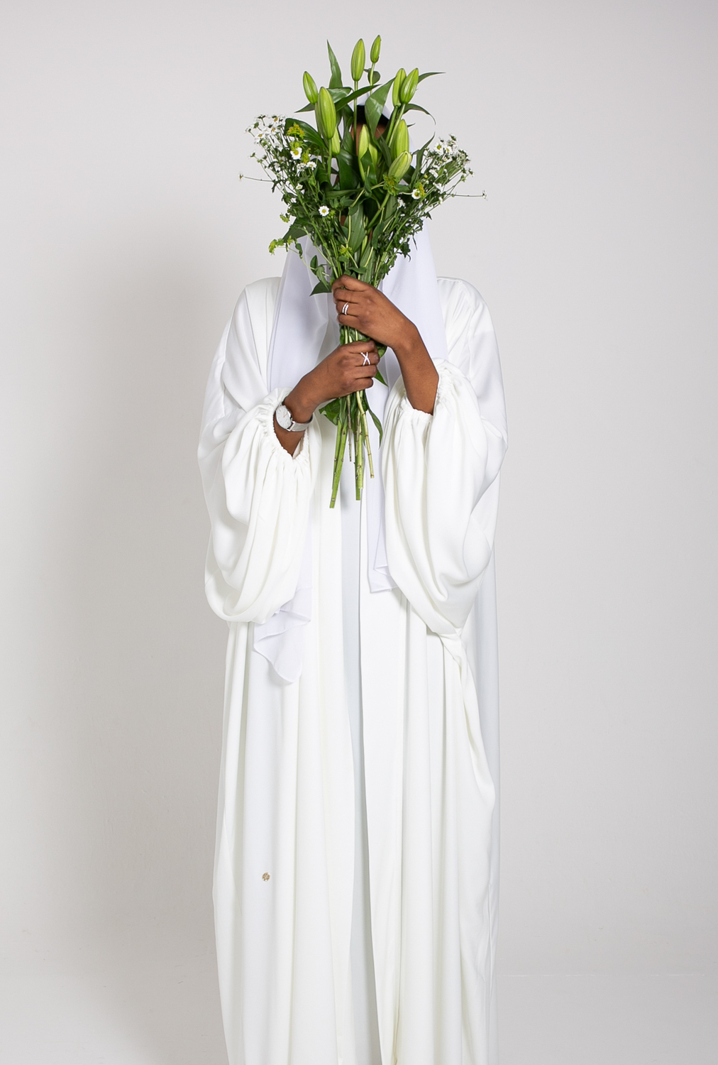 Dare to stand out with our exquisite white abaya set, featuring unique balloon arms that add a touch of whimsy to your modest look. Crafted from premium quality fabric, this three-piece ensemble embodies luxury and versatility. Elevate your wardrobe with our stunning white abaya set, designed to make a statement of sophistication and style, while ensuring unparalleled comfort and durability